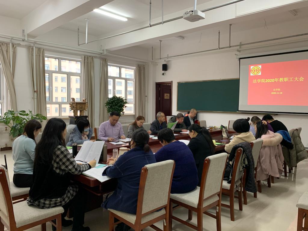 11月18日下午,法学院在崇文楼B428会议室召开了2020年教职工大会,法学院全体教师参加本次大会。会议由法学院工会主席张雪皓主持。