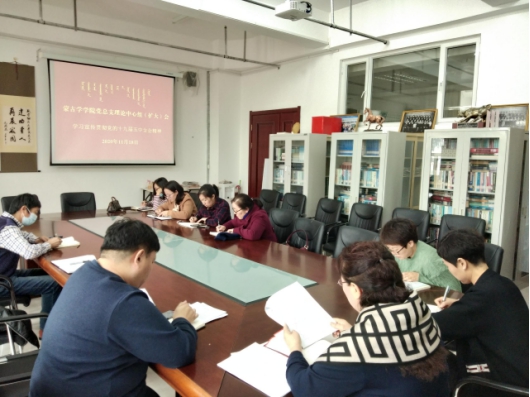 11月18日上午,蒙古学学院党总支理论学习中心组在崇文楼B座组织科级以上干部专题学习党的十九届五中全会精神。学习会由党总支书记乌云主持。