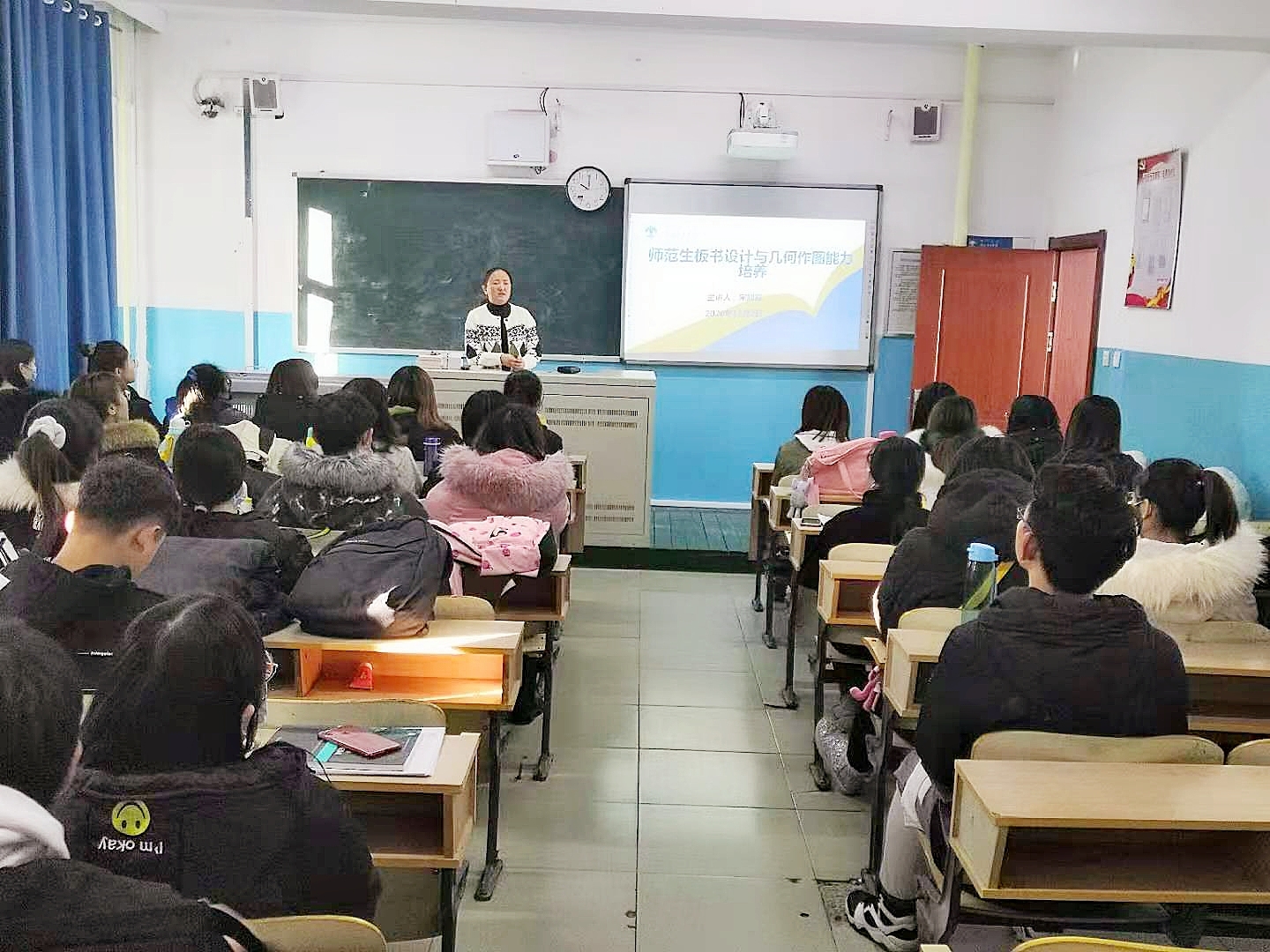 为加强对师范生的教育培养,促进师范生教师专业能力的提升,数学与统计学院于12月2日上午在笃学楼405组织开展“师范生板书设计与几何作图能力培训”讲座,由副书记宋旭霞教授担任主讲,2018级数学与应用数学专业全体同学参加了培训。