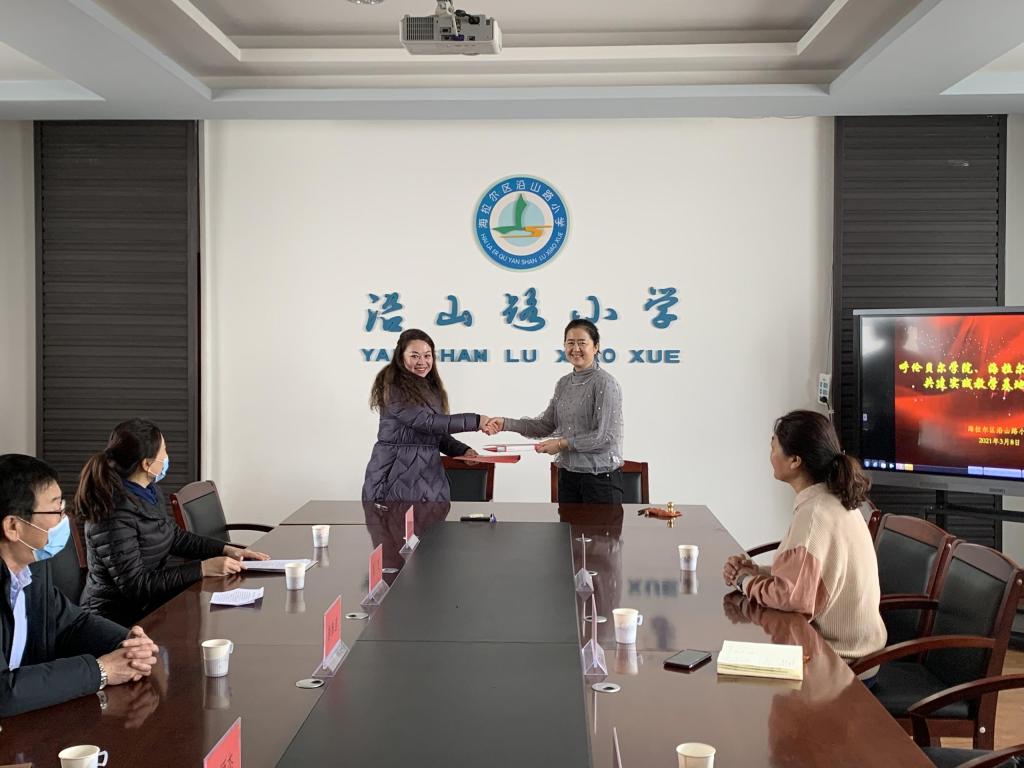 3月8日,音乐与舞蹈学院党总支书记李雅杰、副院长灵芝、副书记夏颖杰、实习实训中心主任刘丽丽、团学办教师包孟磊一行5人,赴海拉尔头道街小学、海拉尔区沿山路小学签约共建呼伦贝尔学院实践教学基地。头道街小学校长张芸、沿山路小学校长刘晶等学校负责人出席活动。