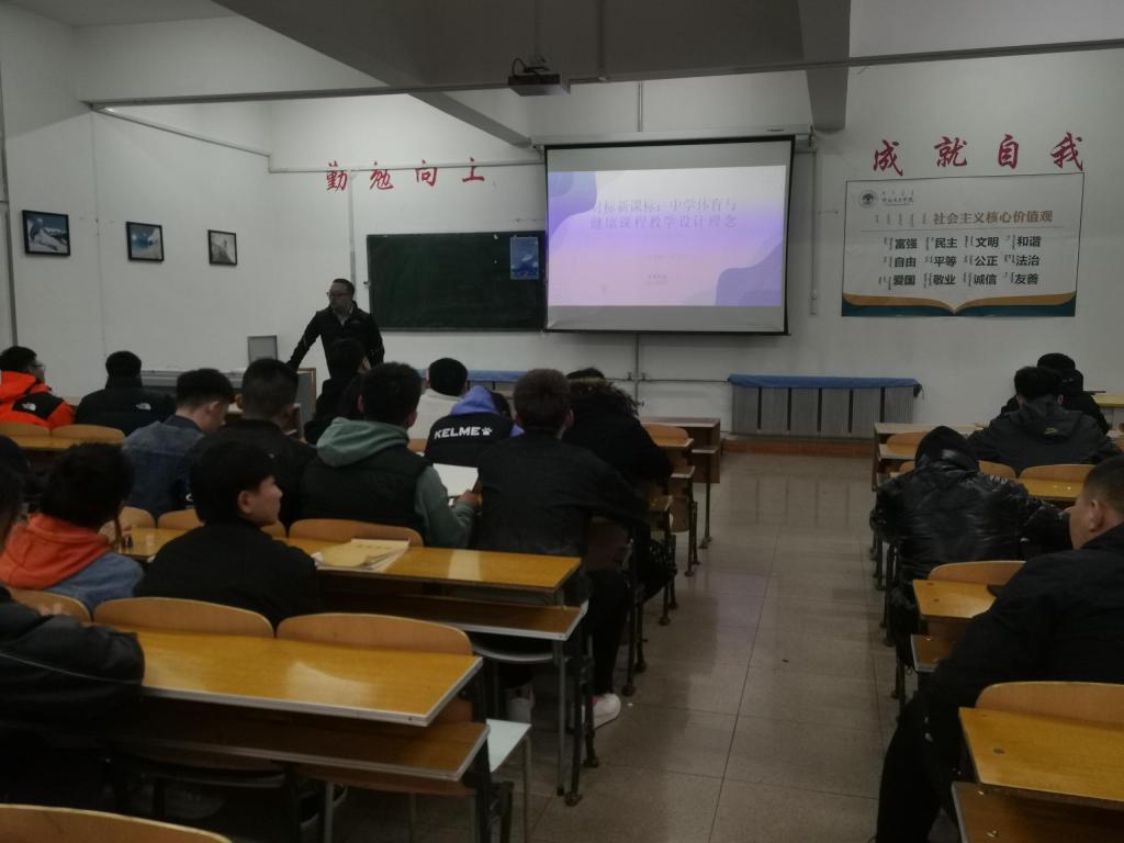 4月17日,体育学院林剑冬副教授在体育馆多媒体教室举办了《对标新课标——中学体育与健康课程教学设计理念》主题讲座。2018级体育教育专业三个班的学生参加了此次讲座。