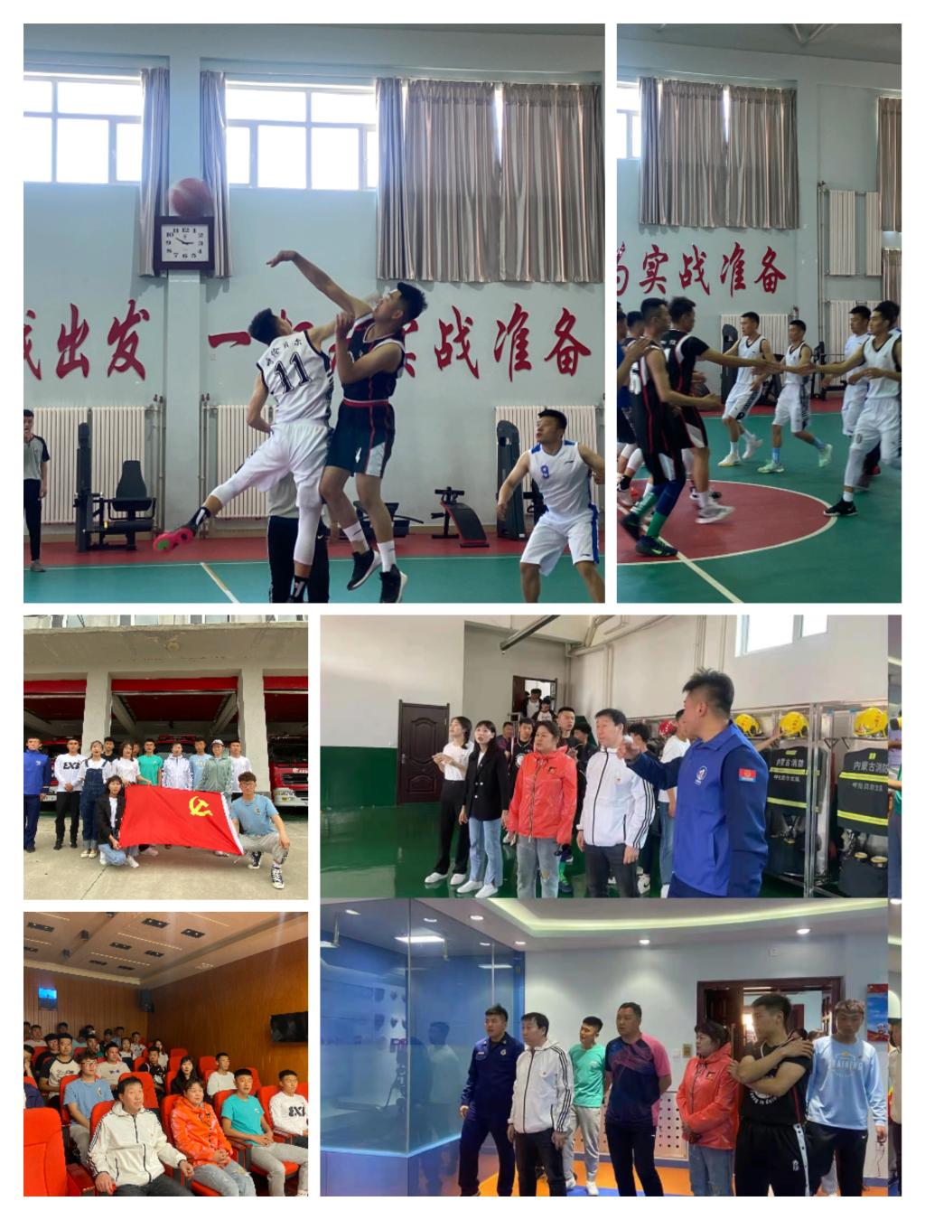为庆祝建党100周年,持续推动党史学习教育有力、有序、有效开展,提高学习教育效果,开展拥军爱民活动,筑牢共建平台,5月21日下午,体育学院与鄂温克旗消防救援大队开展志愿服务共建交流及篮球比赛活动。体育学院党总支副书记胡日查、教工支部书记关祥伟、校男篮教练秦智勇、张大伟和部分师生党员等参加了活动。