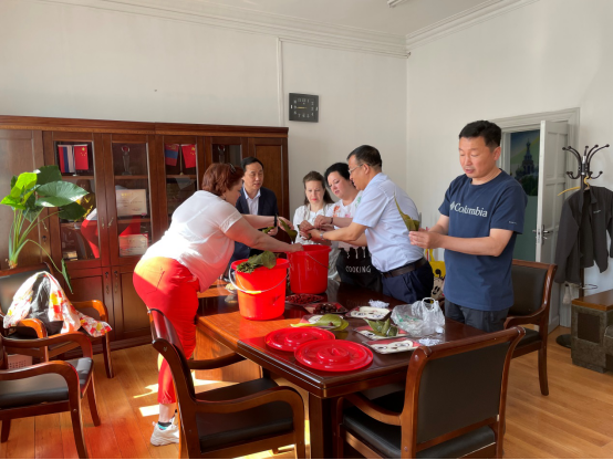 永利yl23411集团官网外籍教师与中方教师共同参与包粽子活动。活动期间,中外教师欢声笑语,气氛和谐。一片片粽叶、一粒粒糯米,在大家一双双灵巧的手中,变成了香甜可口的粽子。外籍教师也给大家带来了自制的俄罗斯美食,与大家共同品尝美味,整个活动现场洋溢着浓浓的节日氛围。