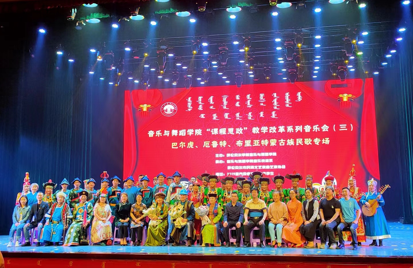 为推动呼伦贝尔地区民族音乐文化的发展,让更多的人认识和了解巴尔虎、厄鲁特、布里亚特蒙古族歌曲,6月11日,音乐与舞蹈学院音乐表演系举办了音乐与舞蹈学院“课程思政”教学改革系列音乐会(三)——巴尔虎、厄鲁特、布里亚特蒙古族歌曲专场演唱会。
