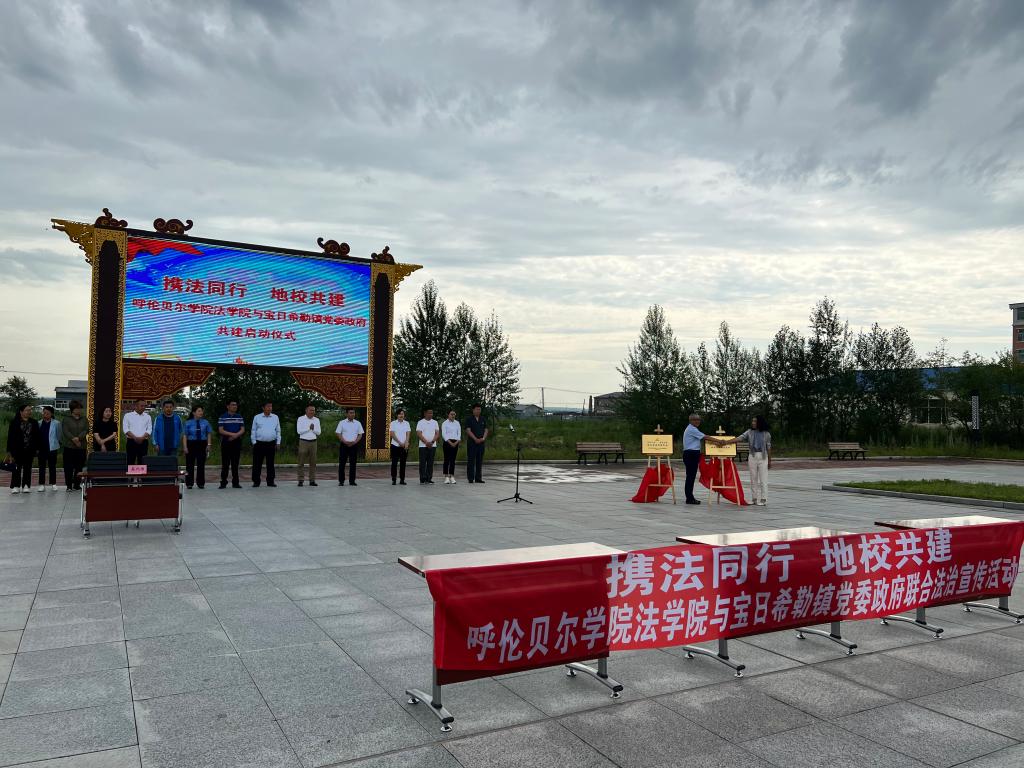 法学院党总支副书记白杰与栓柱书记共同签署了呼伦贝尔学院法学院党总支与中共宝日希勒镇委员会《融合党建协议书》;马斌院长与婧婧镇长共同签署了宝日希勒人民政府与呼伦贝尔学院法学院《共建协议书》,并共同完成揭牌仪式。最后,双方为社区居民进行了细致详细地普法宣传,针对百姓提出的问题进行答疑解惑。