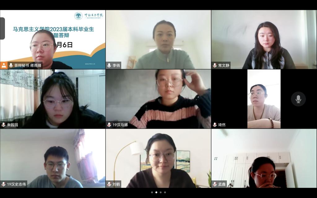 为切实提高本科生毕业论文质量,2月9日上午,马克思主义学院在线上进行了开题答辩活动,全体指导教师及2019级思想政治教育专业学生参加。