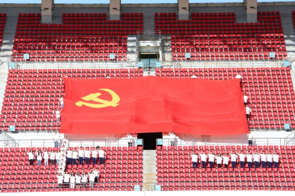 活动中,学生党员、积极分子与国旗、党旗合影,拍摄“中华民族一家亲,同心共筑中国梦”主题作品,共同庆祝中国共产党成立102周年。