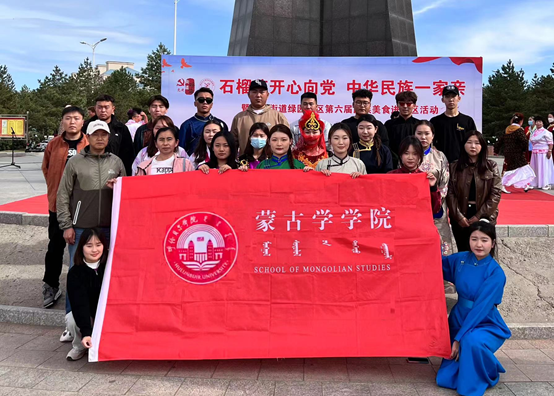 在中秋、国庆双节来临之际,9月14日,蒙古学学院联合共建单位——呼伦街道举办“石榴花开心向党 中华民族一家亲”暨绿园社区第六届民族美食节活动。学院党总支副书记孔春艳、团学办主任额尔布乐图带领20名学生参加此次美食节的文艺演出与志愿服务。