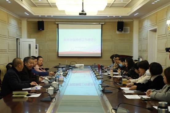 会上,李崇辉就美术学院在硕士点申报中的优势与不足提出了针对性的指导意见。李崇辉指出,要以申硕为抓手,突出学科建设特色与内涵,明确人才培养定位,服务地方社会,凸显地域文化特色,整合资源,有效提高申硕工作效率。