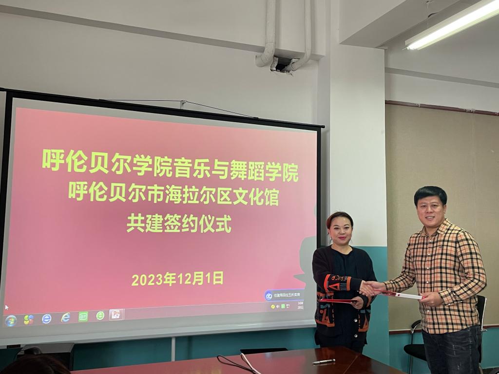 12月1日,永利yl23411集团官网音乐与舞蹈学院与海拉尔区文化馆举行共建签约仪式。海拉尔区文化馆馆长、海拉尔区美术馆馆长、海拉尔区乌兰牧骑队长王志,海拉尔区文化馆副馆长文华、副馆长斯力木格一行来学院参加签约仪式,音乐与舞蹈学院院长灵芝、副院长刘丽丽、实习实训中心主任何丹参加仪式。