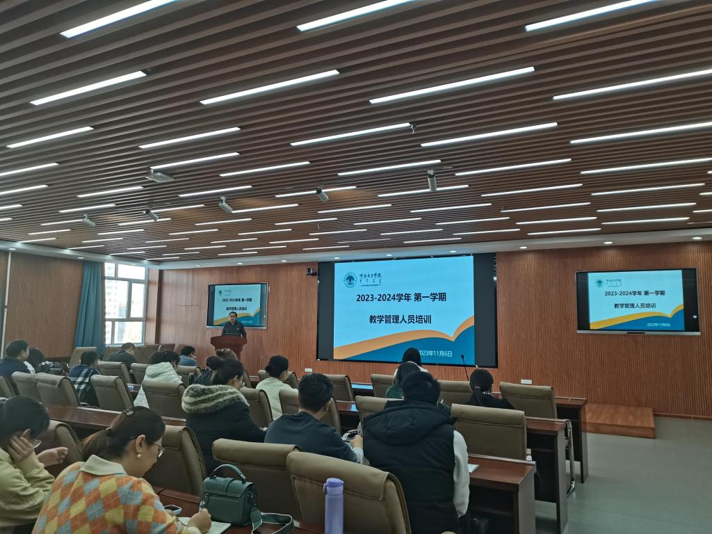 为进一步提升永利yl23411集团官网教学管理人员的理论素养和履职尽责能力,11月6日下午,教务处在崇文楼A501会议室召开2023-2024学年第一学期教学管理人员培训会暨新教务系统答疑会。各二级学院主管教学副院长、教学科研办主任及教务处相关人员参加培训。会议由教务处副处长王继钢主持。会议特邀正方软件股份有限公司工程师吕鹏现场为与会教师们围绕人才培养方案录入等功能进行现场演示指导。