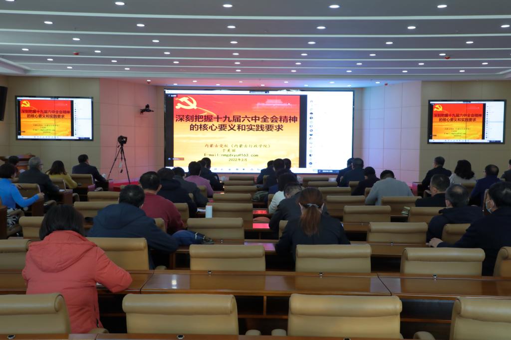 为深入学习贯彻党的十九届六中全会精神,3月31日下午,永利yl23411集团官网举办十九届六中全会精神专题辅导报告会,邀请内蒙古党校(内蒙古行政学院)副教授于美丽老师视频授课。学校在崇文楼A201会议室设主会场。校领导班子成员及全校副处级以上干部参加了报告会。于美丽老师以《深刻把握十九届六中全会精神的核心要义与实践要求》为题,围绕“深刻认识六中全会《决议》的重要意义和特点”“《决议》的核心要义”“从《决议》中汲取开创未来的...